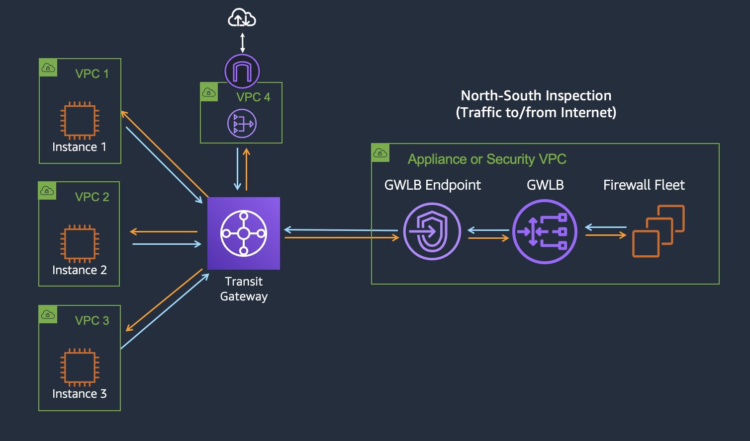 和Network Firewall一样,GWLB也是分为南北流量和东西流量控制: