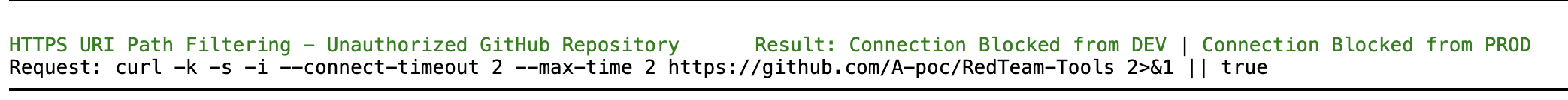在浏览器中刷新 TLS 检查测试脚本,验证对特定 GitHub 仓库的访问是否被允许,以及对此示例恶意仓库的访问是否被阻止。